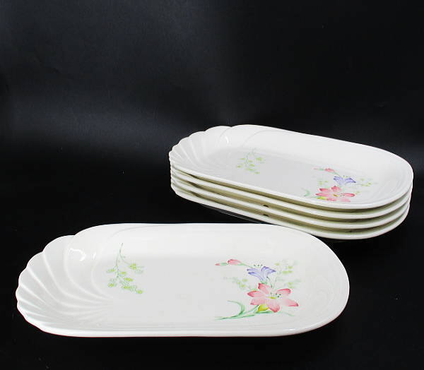 - 28cmプレート 長皿 花柄 5枚セット AKULA ステンレスフォーク付