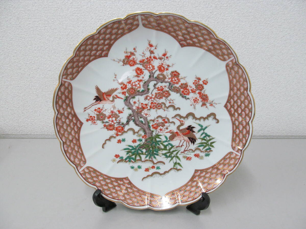 - 有田焼 秀峰 花鳥 鶴 梅 色絵金彩 飾皿 大皿 飾り皿 径27cm