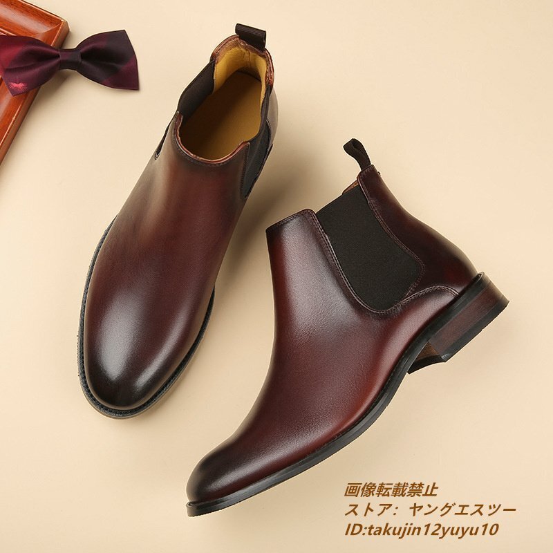 - 極美品★牛革ビジネスシューズ メンズ 本革レザーシューズ マーティンブーツ ハイカット ショートブーツ 紳士靴革靴 通勤 ブラウン 27.0cm