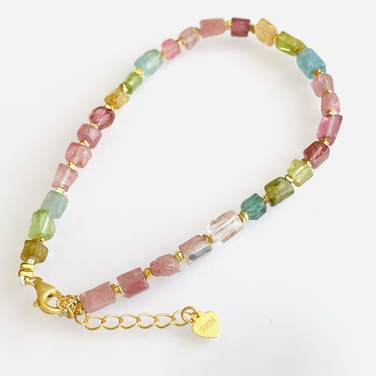 > 天然トルマリン ウォーターメロントルマリン 【K233】アクセサリー ブレスレット トルマリン デザイン カラーストーン3-4㍉珠 16cm