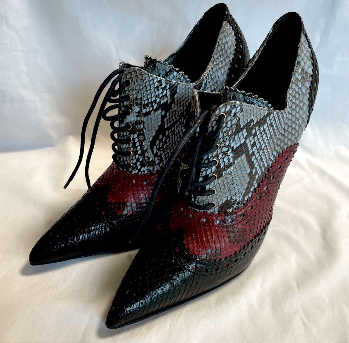 - GUCCI グッチ パンプス パイソン レザー ピンヒール 37 約24cm 黒 赤 レディース 靴 シューズ レースアップ ブーティー 388570