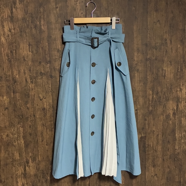 - C21◇Andemiu | アンデミュウ ベルト付きプリーツ切替スカート ブルー×ホワイト レディース Mサイズ 中古品