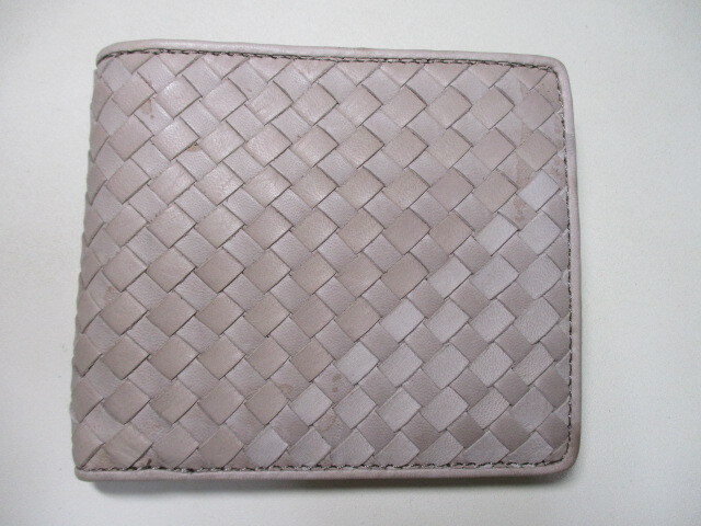 - 訳アリ 新品 財布 メンズ 二つ折り Neutral Gray ブランド 本革 牛革 ソフトな牛革 編み込みメッシュ グレー SALE セール 格安 E