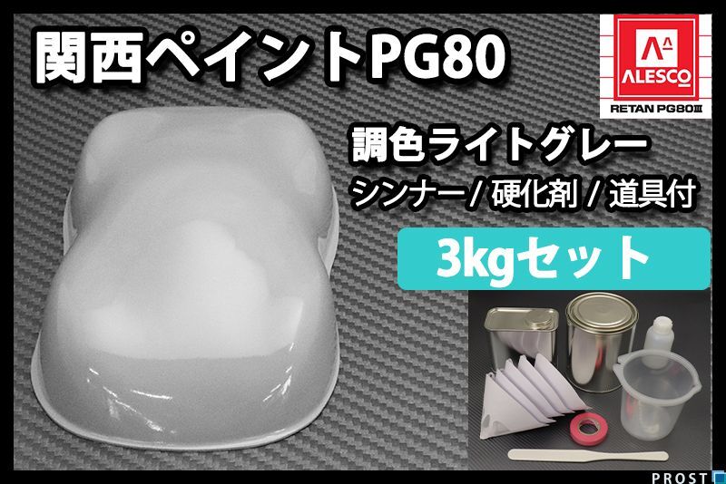 - 関西ペイント PG80 ライト グレー 3kg セット (シンナー 硬化剤 道具付) 2液 ウレタン 塗料 Z26