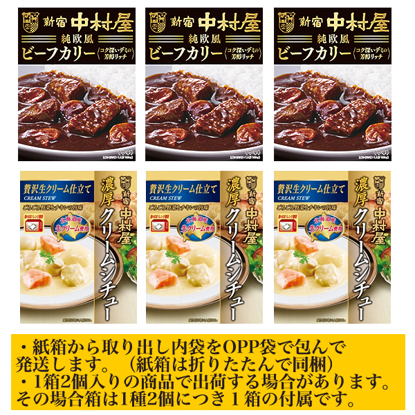 - ■新宿中村屋 純欧風ビーフカリー(黒箱)・クリームシチュー 2種6箱■