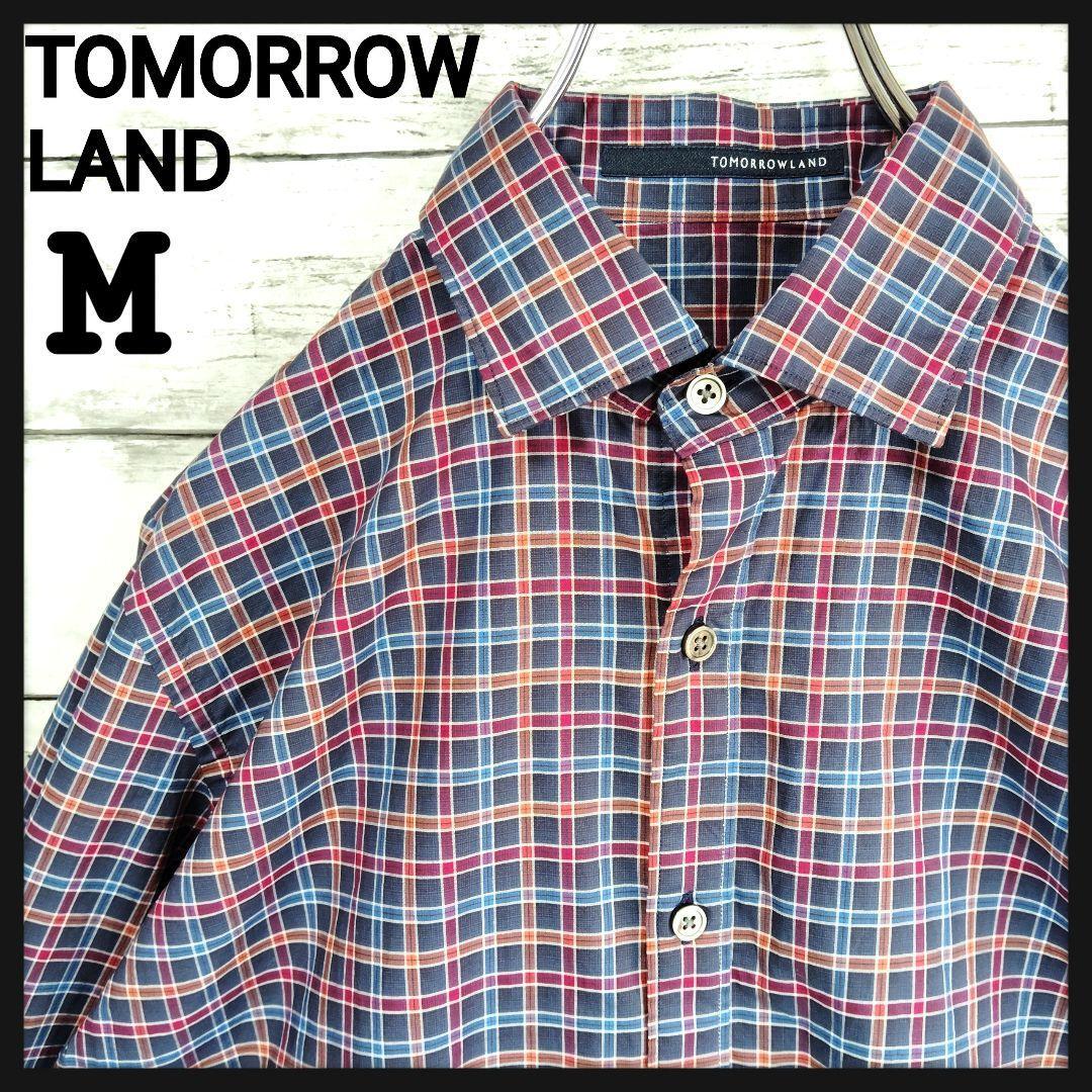 - 【人気】トゥモローランド チェック柄長袖シャツ 天然の貝ボタン使用 なめらか生地 M シェルボタン