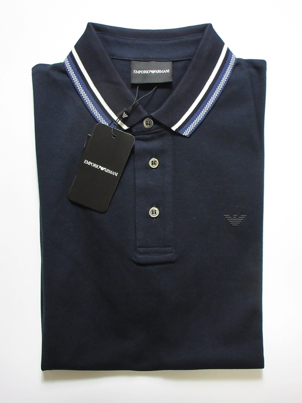 - 新品 EMPORIO ARMANI エンポリオアルマーニ コットン 鹿の子 半袖 ポロシャツ XS ネイビー
