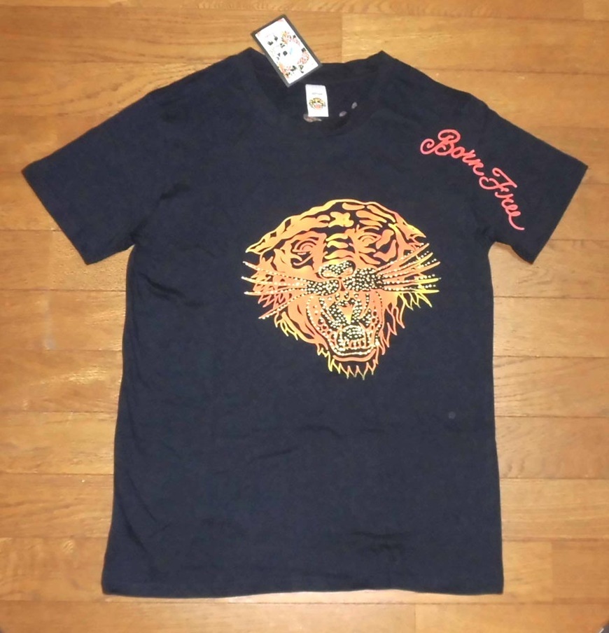 > ED HARDY エド ハーディー Tシャツ 半袖 コットン ラインストーン ed1973 TIGER タイガー BK M 紙タグ付未使用品/クリスチャンオードジェー
