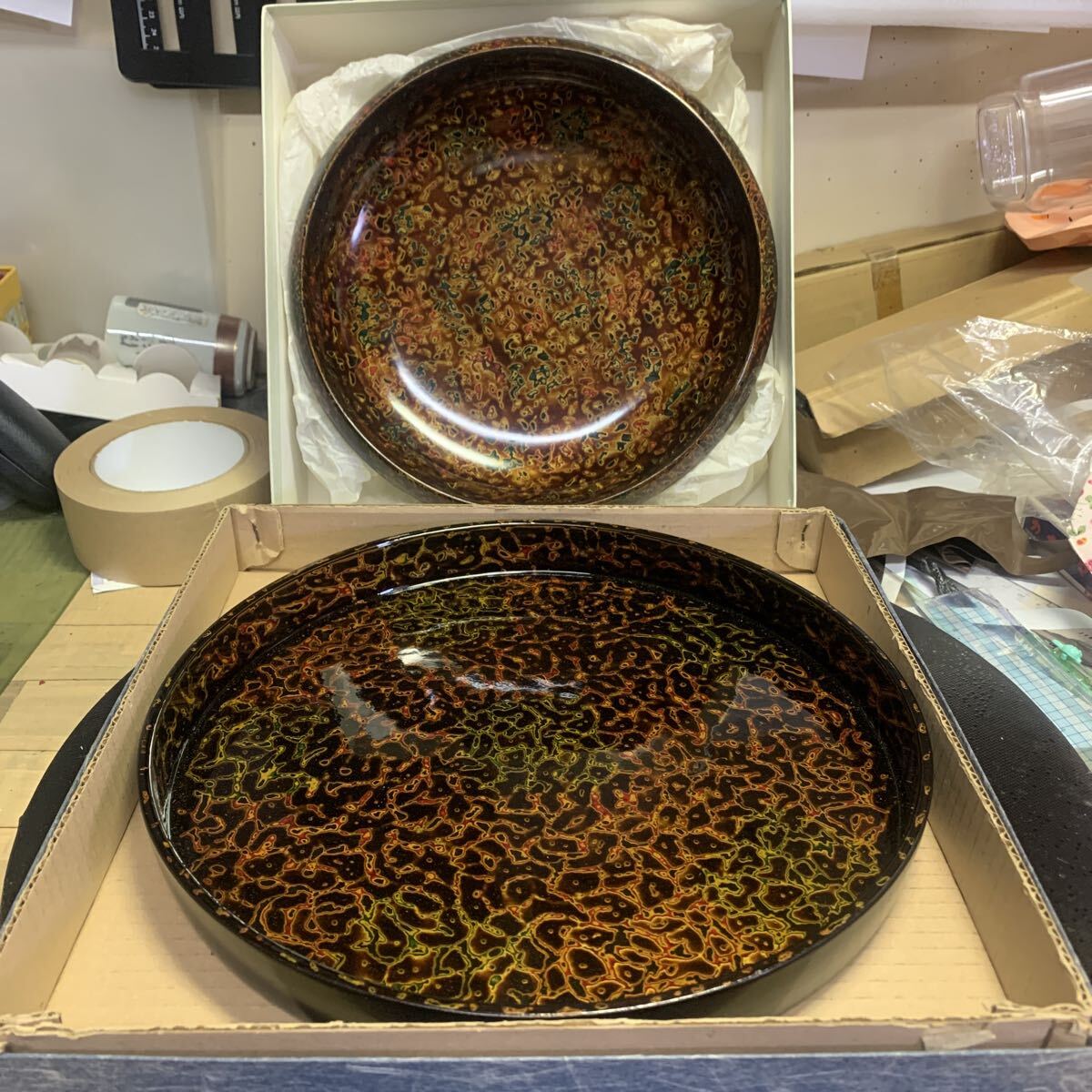 - 漆器 菓子器 津軽塗 丸盆 お盆 漆芸