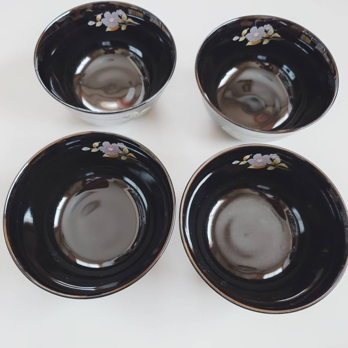- 宅急便送料無料 中鉢 丼 椀 どんぶり 計4点 黒 ブラック 花柄 食器 匿名配送