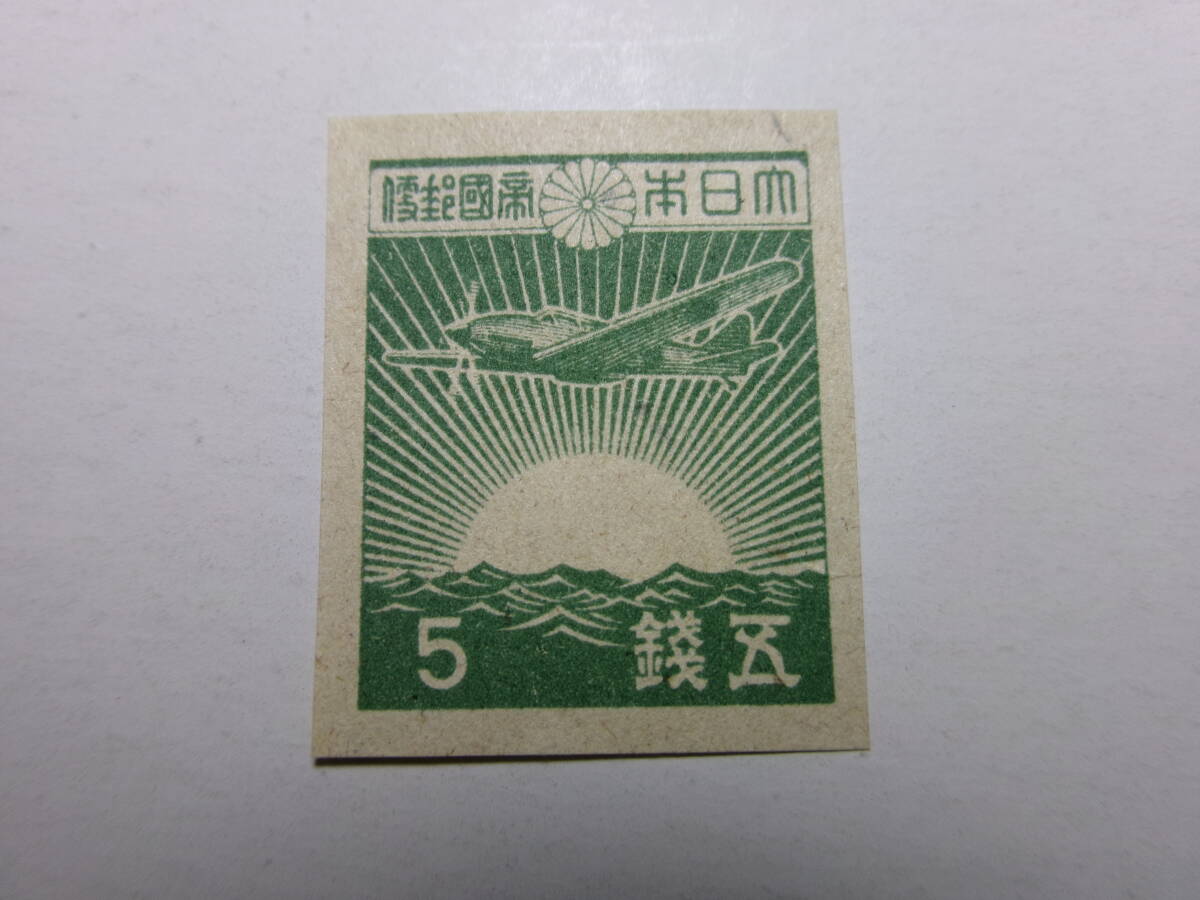 - 3次昭和切手 旭日と飛燕機(戦闘機) 5銭 粗紙 未使用