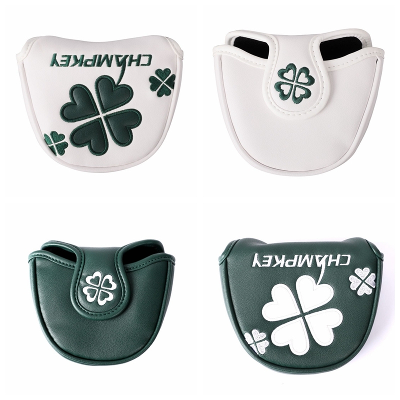- ヘッドカバー パターカバー マレット用 オデッセイ2ボール・テーラーメイド スパイダーパターに対応 クローバー模様 白 緑 円形