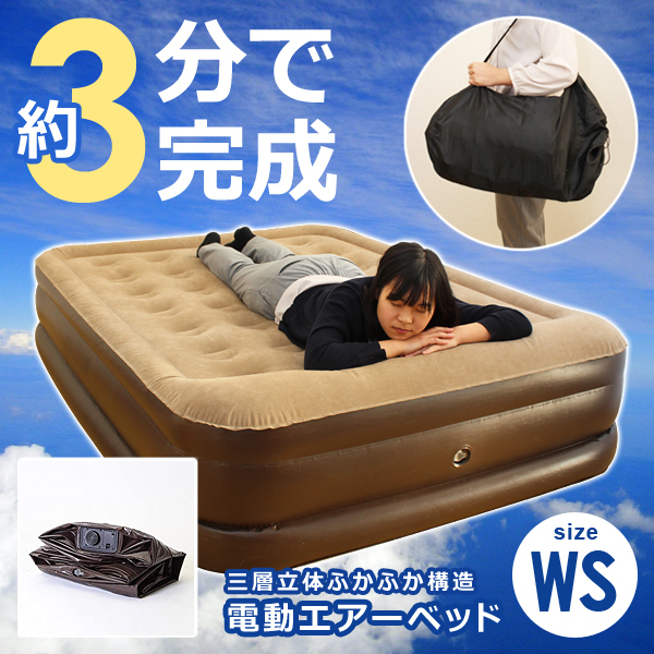 - 電動ベッド ワイド シングル 大きいサイズ 折りたたみ式 エアーベッド 自動 空気入れ コンパクト 大きめ 空気で膨らむ 電動エアベット