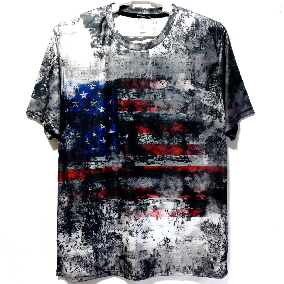- 特価/未使用【サイズ=L】アメカジ/星条旗プリント/メンズ/メッシュ/半袖/Tシャツ/ビッグシルエット/胸囲=96~104cm/画像の色柄