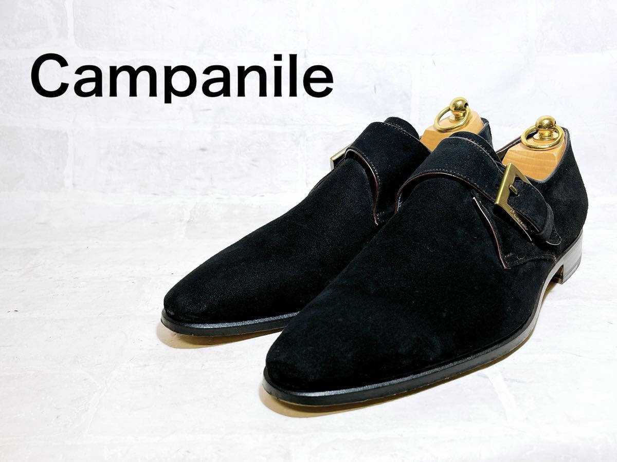 - 1回着【極美品】Campanile カンパニーレ 高級 モンクストラップ ビジネスシューズ スエード 黒 UK8(約26.5cm)メンズ イタリア製
