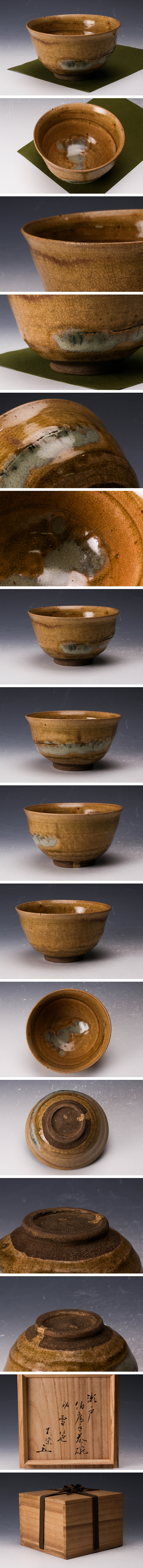【佳香】時代 黄瀬戸伯庵手茶碗 銘『雪笹』 松尾宗吾(不染斎)書付箱 茶道具