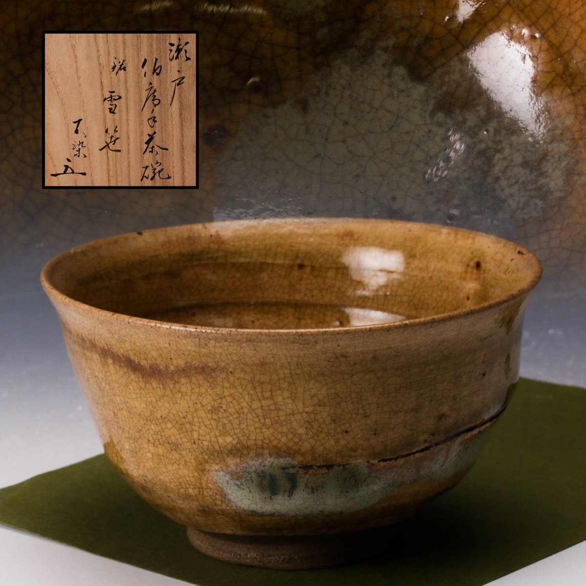 【佳香】時代 黄瀬戸伯庵手茶碗 銘『雪笹』 松尾宗吾(不染斎)書付箱 茶道具拍卖