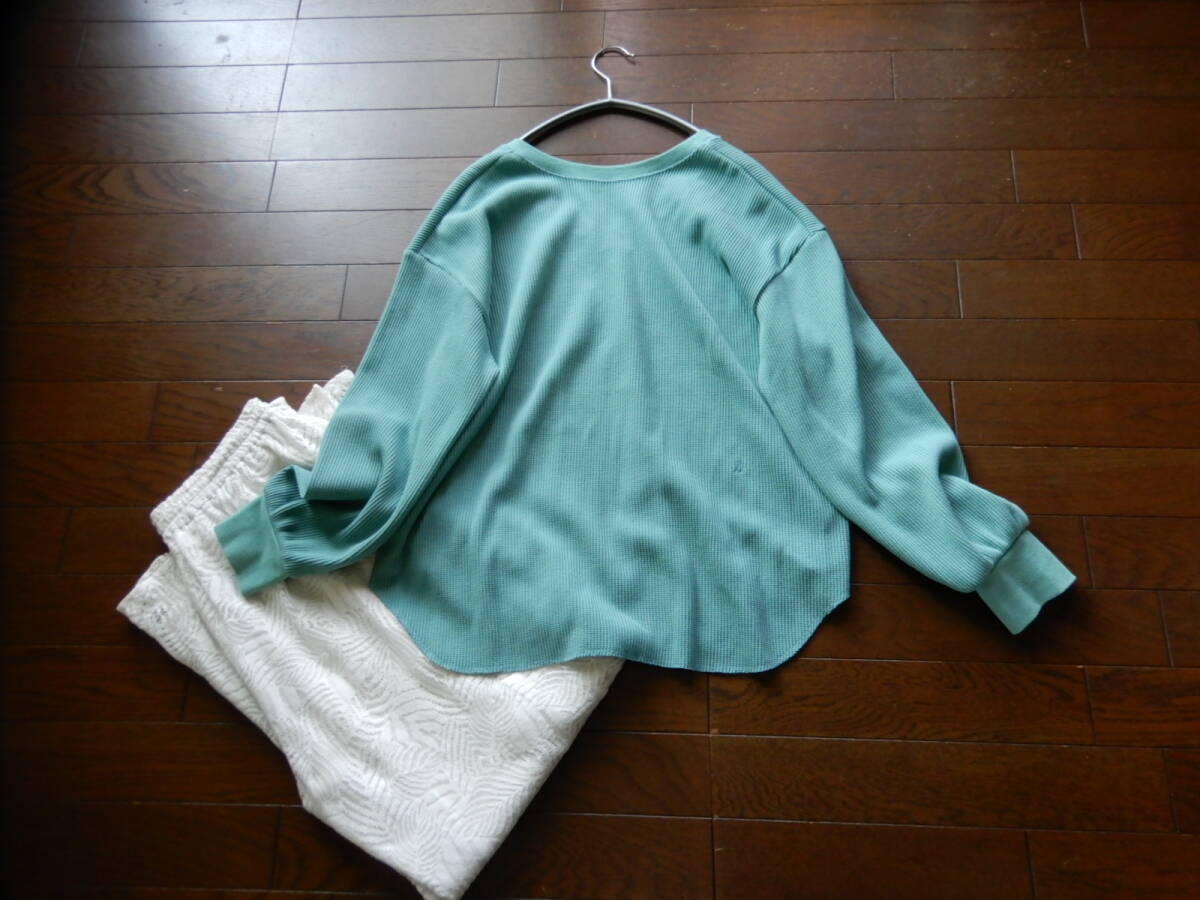 - 【Mila Owen/ミラオーウェン】ロゴ付き大人可愛いワッフル長袖カットソー グリーン系