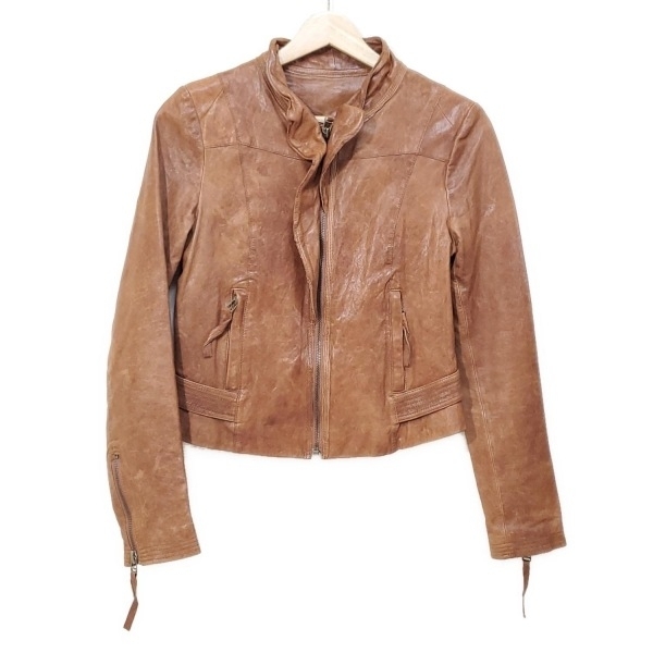 - ザファースト THE FIRST ライダースジャケット サイズM - ブラウン レディース 長袖/春/秋 美品 ジャケット
