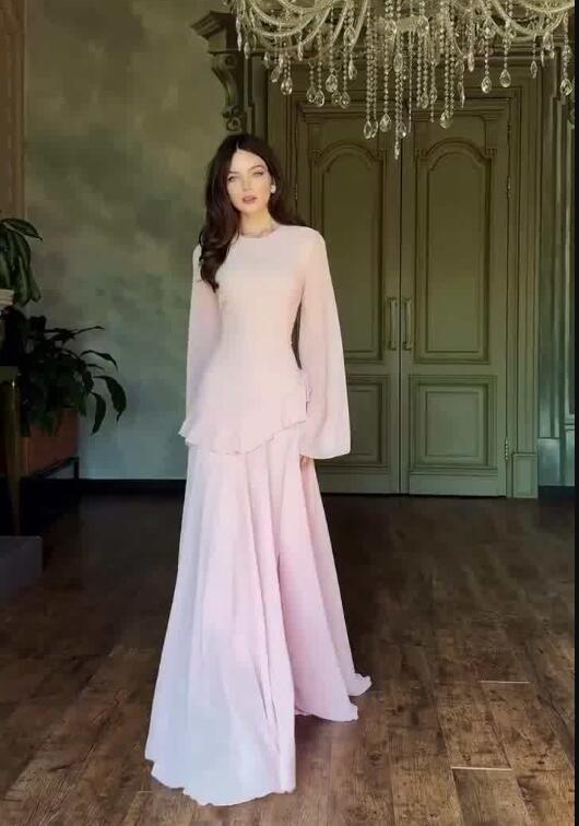 - M0901 ワンピースレディース● 着心地抜群 女性 20代30代40代● 発表会dress 長袖 ピンク