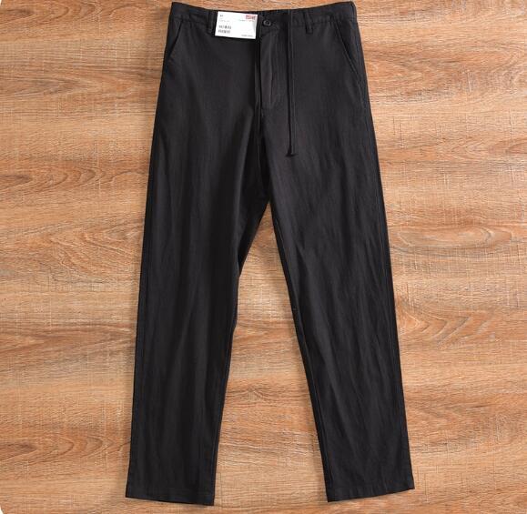 - 新入荷上質M ブラック 新品 リネン ストレートパンツ イージーパンツ 九分丈 綿麻混 通気 メンズ ビジネス サマー ウエストゴム カジュアル