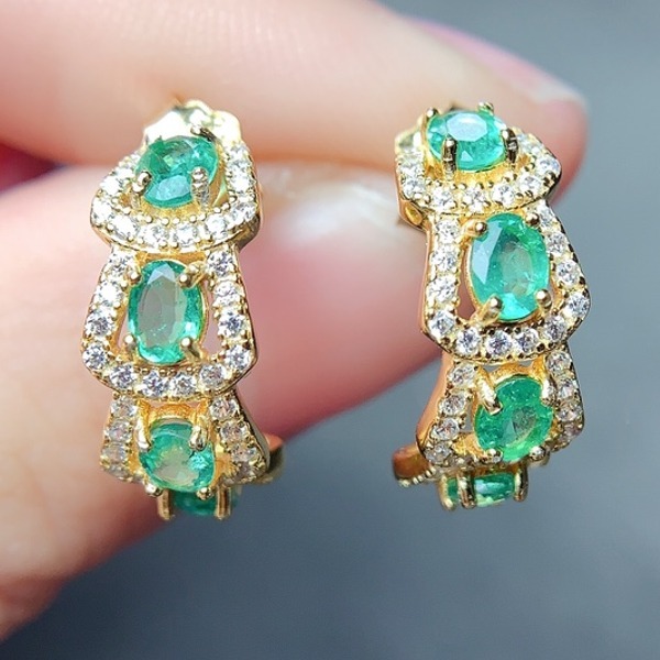 - 天然エメラルドジェムストーンピアス、925シルバー、鑑別付き、残り時間4日までに最初に入札すると開始価格で購入可能_Yu