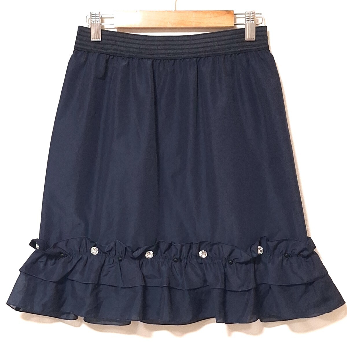 - W9【TO BE CHIC】トゥービーシック フリル スカート 三陽商会 ラインストーン エレガント フェミニン 華やか ネイビー サイズM相当 /QQ