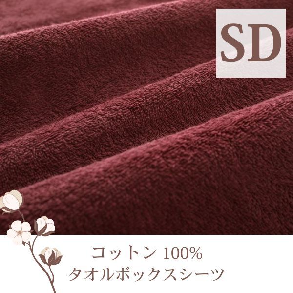 > ザブザブ洗えて気持ちいい!コットンタオルのベッド用ボックスシーツ 同色2枚セット セミダブル ワインレッド