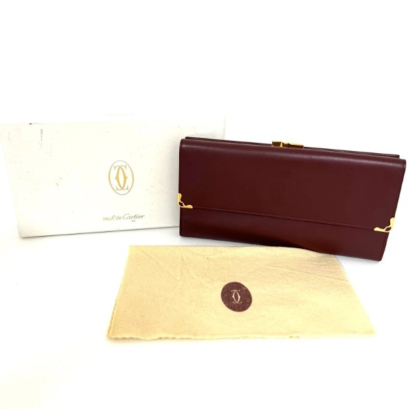 - SD0929 美品!格安! Cartier カルティエ マストライン がま口 二つ折り長財布 レザー ボルドー×金具ゴールド ロングウォレット