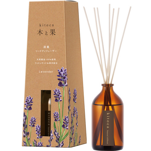 - 消臭・芳香剤(リードディフューザー)KITOCA・木と果 ラベンダー (天然精油100%使用)90ml/日本製sangoaroma