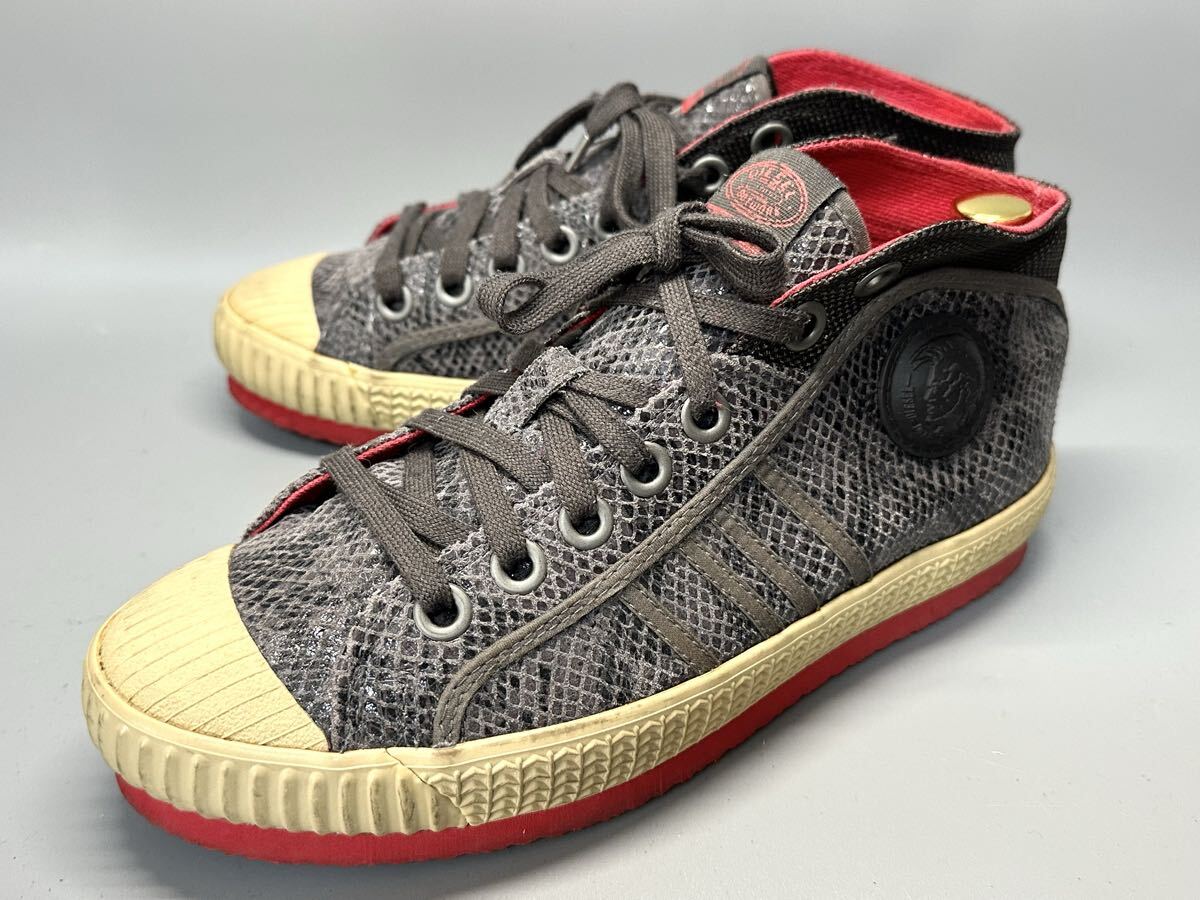 > 【即決】DIESEL メンズ 26.5cm ディーゼル ハイカット スニーカー くつ 靴 グレー 柄 レザー オシャレ