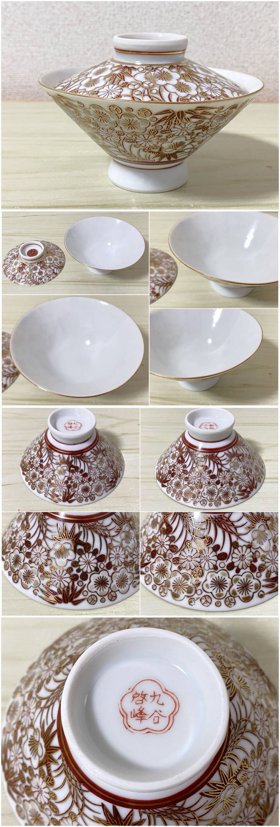 - 【KB105】九谷焼 啓峰 蓋付 夫婦茶碗 ペア 金彩赤絵花紋 直径約11cm 高さ約5cm 和食器 陶器 陶磁器 焼物 工芸品