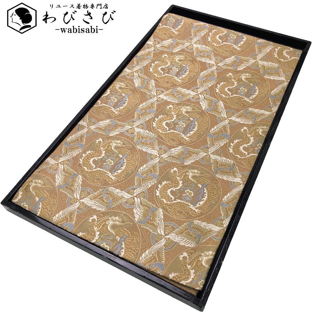 - 袋帯 丸に龍 向かい鳥 紗綾形 胡桃色 O-5432 着物 きもの kimono 和服 和装 中古 リサイクル着物 【送料無料】