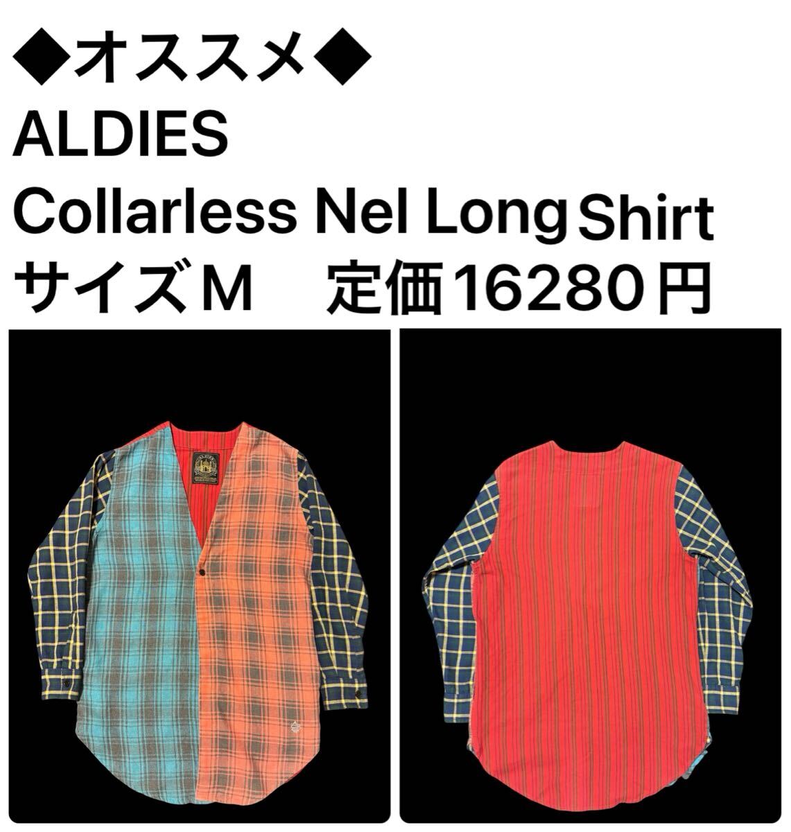 - ◆オススメ◆ALDIESシャツ Collarless Nel Long Shirt / カラーレスネルロングシャツ サイズM 定価16280円