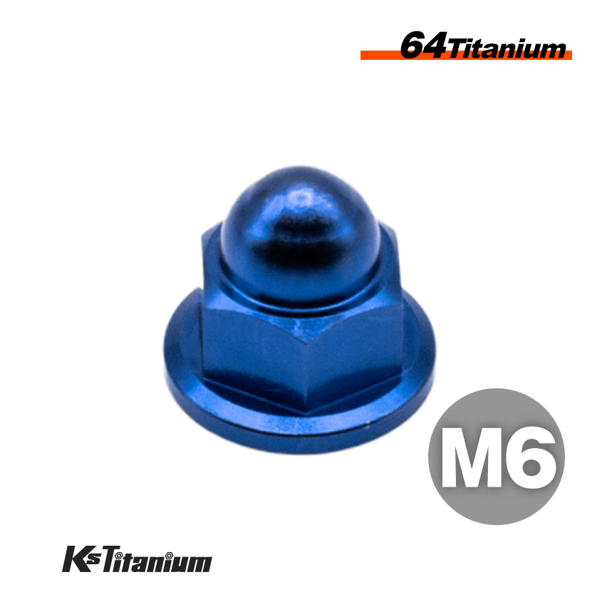 - チタンナット M6 P1.0 ブルー 1個売り 64チタン 袋ナット フランジキャップナット バイク レストア パーツ