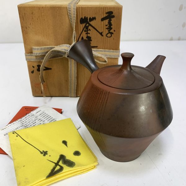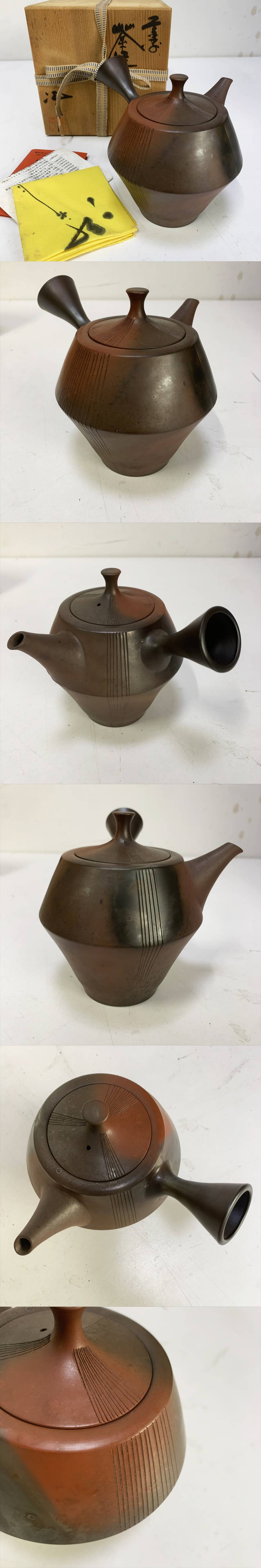 - 常滑名工 小西洋平 常滑焼 朱泥窯変算盤型横手急須 共箱 茶注 煎茶道具 煎茶器 約15cm