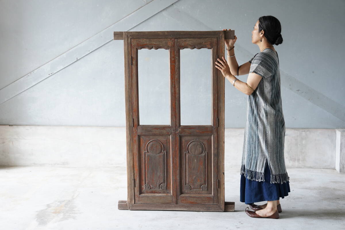 - インド アンティーク 木枠 木製フレーム インテリア オブジェ ディスプレイ パーテーション 建具 窓 置物 アンティークドア ドア DIY