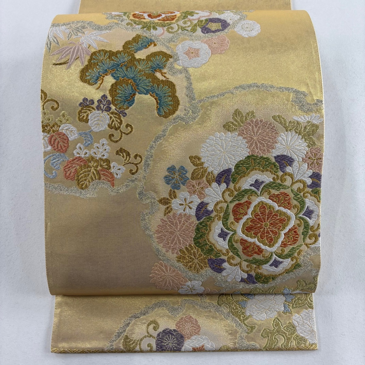 > 袋帯 美品 秀品 雪輪 華文 金銀糸 箔 金色 六通 正絹 【中古】
