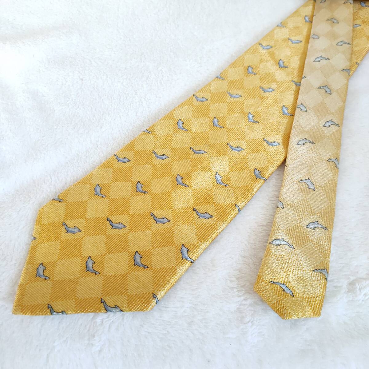 - ドミニオーニ シルク100% イタリア製 ドミニオーニ ブランドネクタイ イルカモチーフ イエロー シルク メンズ DOMINIONI 総柄 個性派