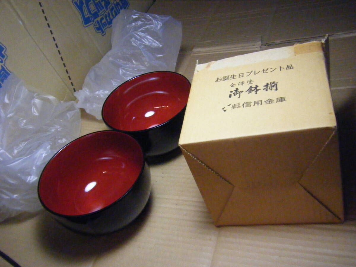 - 御鉢揃 2個 漆器 会津塗 渓彩 伝統工芸 黒赤 未使用品