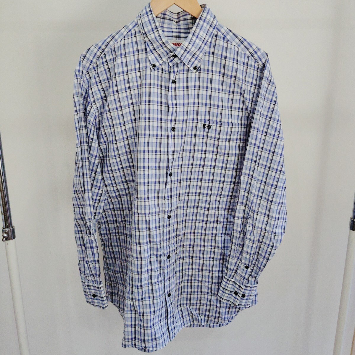 - 0902/2L/McGREGOR メンズ 長袖シャツ ブラウス ボタンダウン チェック柄 ブルー