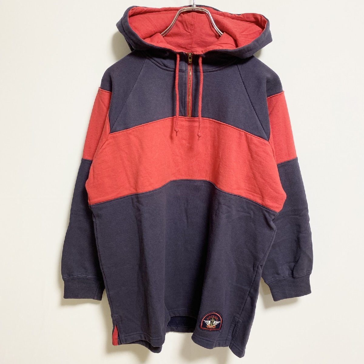 - 古着 used 90s DOCKERS ドッカーズ ハーフジップスウェットパーカー ネイビー 赤 レッド ヴィンテージ Mサイズ