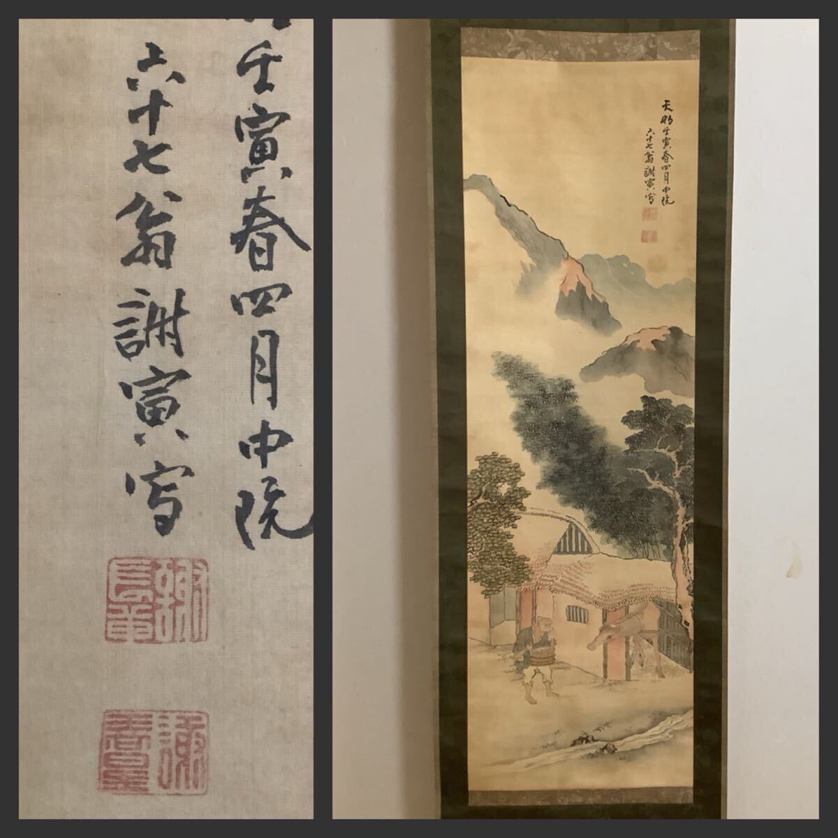 > 【模写】掛軸Sep710B[与謝蕪村(謝寅) 山水馬家之図]紙本 書いたもの 木箱/日本画 江戸時代 俳人 文人画家 南画 春星 古書