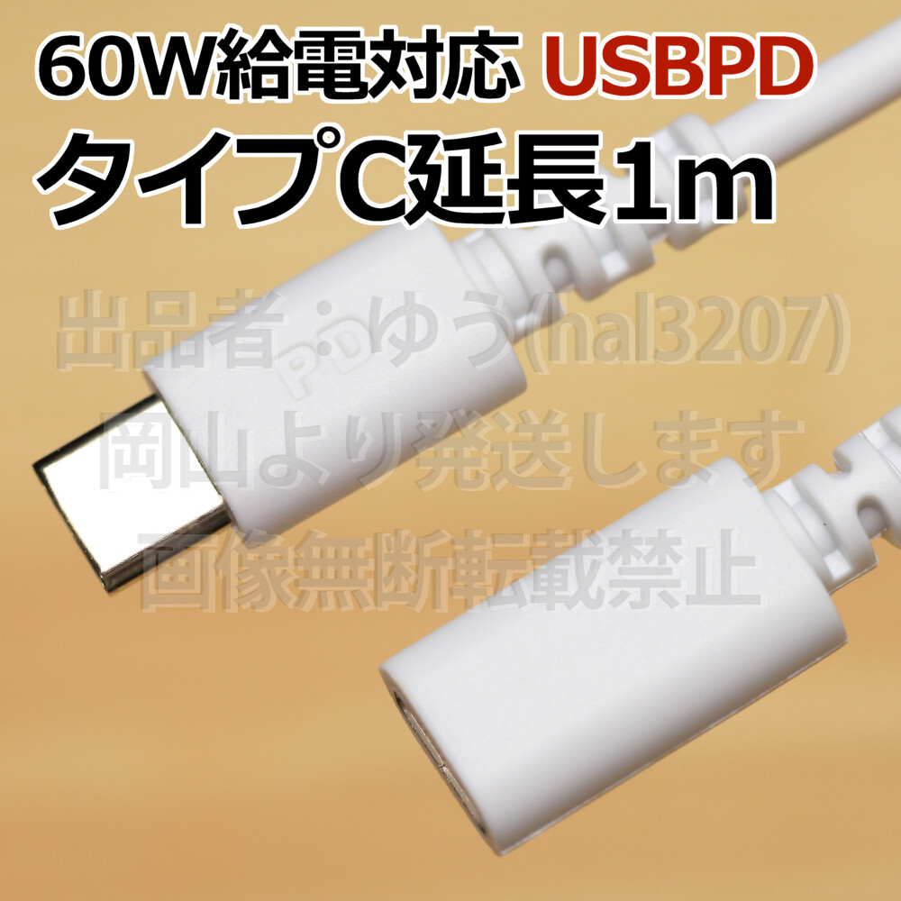 - #送料無料□タイプC延長ケーブル1m# ホワイト 未使用 Type-C スマホ用USBケーブル 3A電源対応 パワーデリバリー対応 スマホ充電ケーブル