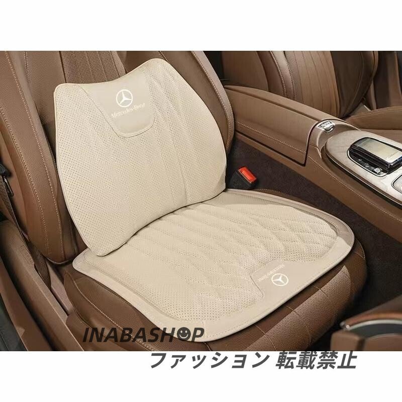 > メルセデス・ベンツ 高品質 シートクッション 車用 シートカバー ナッパ レザー 腰当て 滑り止め 弾性 座布団1点+腰クッション1点 ベージュ