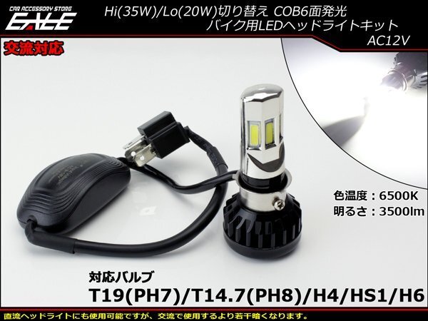 - 交流対応 LEDヘッドライト バルブ ハイビーム35W/ロービーム20W 3500lm 6500K H4/PH7/PH8/HS1/H6対応 Hi/Lo切替 ホワイト6面発光 H-63