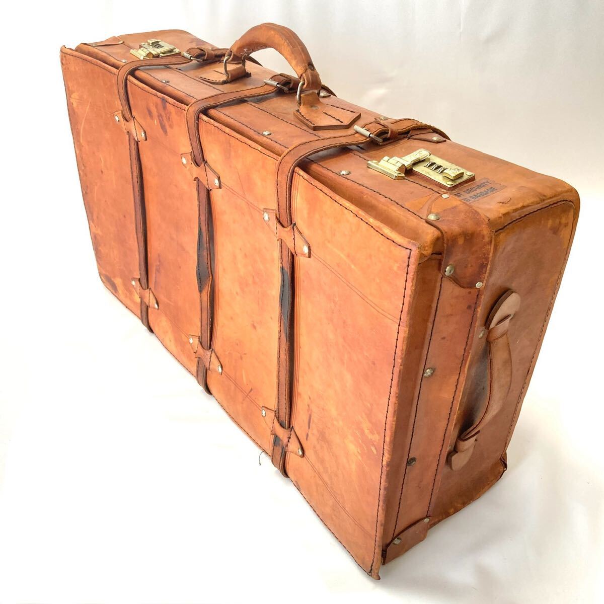 - 特大70cm☆本革レザーアンティークトランク☆旅行鞄かばんアタッシュケース キャリーケース トラベルバッグ 茶 ブラウン スーツケース