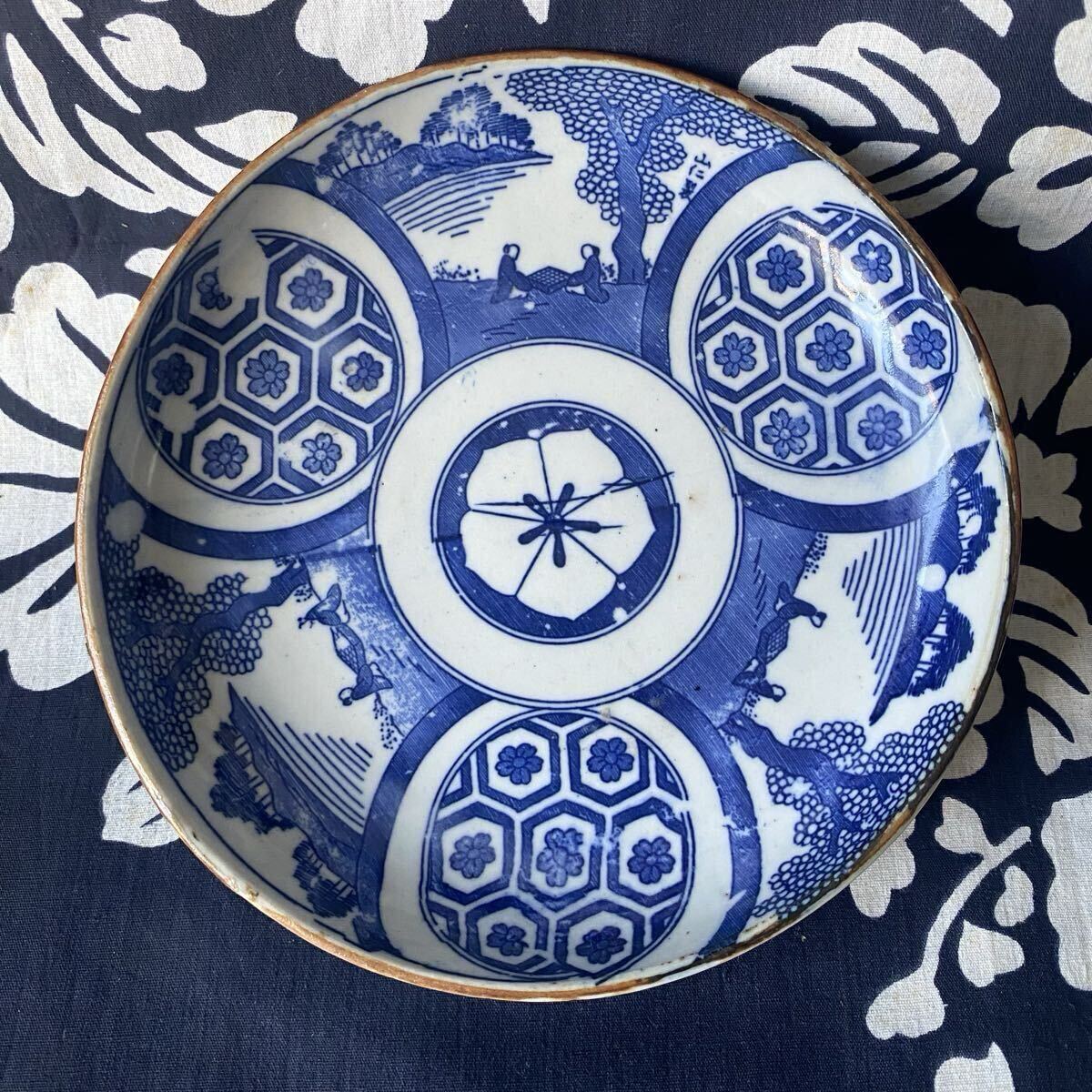 - 希少・珍品 山仁製 図変わり印判皿 五寸 戦国時代 織田信長 明智光秀 本能寺の変 直前対決 大珍事「三劫の図」三コウ 明治 骨董 時代物