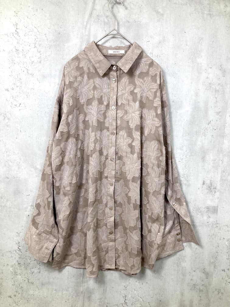 > ゆうパケットOK mily bilet ミウィビレット クラシカルエルフ シアー ジャガード 花柄 2way ブラウス シャツ sizeL/ベージュ ■■