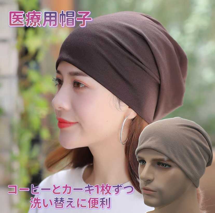 - カーキとコーヒーセット 医療用帽子 レディース 春夏 ニット帽 メンズ 抗がん剤 2枚セット